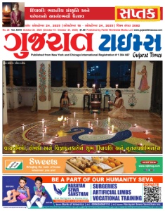 Published from New York and Chicago International Registration # 1 384 667 અંકઃ ઓક્ટોબર 24, 2025 (ઓક્ટોબર 18 - ઓક્ટોબર 24, 2025) િવક્રમ સંવત 2082 No. 26 Vol. XXVII October 24, 2025 (October 18 - October 24, 2025) $1.00 Published by Parikh Worldwide Media, LLC www.gujarattimesusa.com | SURGERIES | ARTIFICIAL LIMBS | VOCATIONAL TRAINING TAX-EXEMPT 501 C-3 ID#33-0928054 BE A PART OF OUR HUMANITY SEVA BEFORE AFTER A/C Name: Narayan Sewa Sansthan Inc. A/C : 000626069110 | Bank: Bank of America | SCAN QR CODE DONATE www.narayansevausa.org Mr Rashmi Gandhi (President) 626-327-4571 | Mr Mukesh Patel (Treasurer) 917-361-9944 | Mr Bharat Solanki (Secretary) 310-408-4926 દિવાળીઃ ભારતીય સંસ્કૃતિ અને પરંપરાન આનંદભરયો ઉત્વ વાચકમિત્રો, લેખક અને િવજ્ઞપનકાર ને શુભ દીપાવલિ અને નૂતનવર્ષાભિનંદન ફોટો સૌજન્યઃ નમિત કડીયા