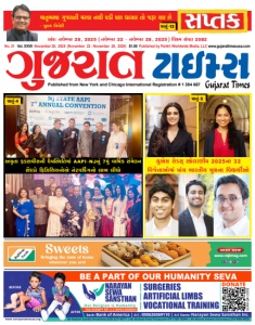 Published from New York and Chicago International Registration # 1 384 667 | SURGERIES | ARTIFICIAL LIMBS | VOCATIONAL TRAINING TAX-EXEMPT 501 C-3 ID#33-0928054 BE A PART OF OUR HUMANITY SEVA BEFORE AFTER A/C Name: Narayan Sewa Sansthan Inc. A/C : 000626069110 | Bank: Bank of America | SCAN QR CODE DONATE www.narayansevausa.org Mr Rashmi Gandhi (President) 626-327-4571 | Mr Mukesh Patel (Treasurer) 917-361-9944 | Mr Bharat Solanki (Secretary) 310-408-4926 માતૃભાષા ગુજરાતી મરવા નથી પડી પણ ઘાયલ તો જરૂર થઇ છે - પુલક ત્રિવેદી અમૃતા ફડણવીસની ઉપસ્થિતિમાં AAPI-NJનું 7મું વાર્ ષિક સંમેલન સેકડો ફ િ િયનોએ નેટવર્િંગનો લાભ લીધો પાનું-12 અંકઃ નવેમ્બર 28, 2025 (નવેમ્બર 22 - નવેમ્બર 28, 2025) વક્રમ સંવત 2082 No. 31 Vol. XXVII November 28, 2025 (November 22 - November 28, 2025) $1.00 Published by Parikh Worldwide Media, LLC www.gujarattimesusa.com પાનું-4 યુએસ રોડસ્ સ્કલરશીપ 2025ના 32 વિ જેતાઓમાં પાંચ ભારતીય મૂળના વિ દ્યાથીઓ પાનું-5