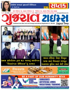 Published from New York and Chicago International Registration # 1 384 667 | SURGERIES | ARTIFICIAL LIMBS | VOCATIONAL TRAINING TAX-EXEMPT 501 C-3 ID#33-0928054 BE A PART OF OUR HUMANITY SEVA BEFORE AFTER A/C Name: Narayan Sewa Sansthan Inc. A/C : 000626069110 | Bank: Bank of America | SCAN QR CODE DONATE www.narayansevausa.org Mr Rashmi Gandhi (President) 626-327-4571 | Mr Mukesh Patel (Treasurer) 917-361-9944 | Mr Bharat Solanki (Secretary) 310-408-4926 પોળોમાં ધબકતાં જીવનની વિશિષ્ટતા - ડો. વૈશલી શાહ પાનું-11 અંકઃ ડિસેમ્ર 19, 2025 (ડિસેમ્ર 13 - ડિસેમ્ર 19, 2025) િવક્રમ સંવત 2082 No. 34 Vol. XXVII December 19, 2025 (December 13 - December 19, 2025) $1.00 Published by Parikh Worldwide Media, LLC www.gujarattimesusa.com ભારત-રશિયાઃ વેપાર વિસ્તૃત કરવા અને િમત્રતાને મજબૂત બનાવવા પુતિન અને મોદી સંમત SKN ફાઉન્ડેશન દ્વરા NJ ગાલાનું આયોજનઃ "વિકલાંગતા ચેમ્પયન્"નું સન્મન પાનું-4 પાનું-6