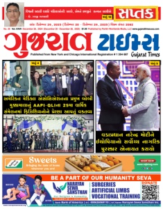 Published from New York and Chicago International Registration # 1 384 667 | SURGERIES | ARTIFICIAL LIMBS | VOCATIONAL TRAINING TAX-EXEMPT 501 C-3 ID#33-0928054 BE A PART OF OUR HUMANITY SEVA BEFORE AFTER A/C Name: Narayan Sewa Sansthan Inc. A/C : 000626069110 | Bank: Bank of America | SCAN QR CODE DONATE www.narayansevausa.org Mr Rashmi Gandhi (President) 626-327-4571 | Mr Mukesh Patel (Treasurer) 917-361-9944 | Mr Bharat Solanki (Secretary) 310-408-4926 વિશ્વની અડધી વસતિ મહિલાઓનીઃ આવો, એમને સમજીને સન્મન આપીએ - ડો. રવજી ગાબાણી પાનું-12 અંકઃ ડિસેમ્ર 26, 2025 (ડિસેમ્ર 20 - ડિસેમ્ર 26, 2025) િવક્રમ સંવત 2082 No. 35 Vol. XXVII December 26, 2025 (December 20 - December 26, 2025) $1.00 Published by Parikh Worldwide Media, LLC www.gujarattimesusa.com વડાપ્રધાન નરેનદ્ર મોદીને ઈથોપિયાનો સરવોચ્ચ નાગરિક પુરસ્કર એનાયત કરાયો અમેરિકન મેડિકલ એસોસિએશનના પ્રમુખ બોબી મુક્કમાલાનું AAPI-QLIના 29મા વાર્ષિક સંમેલનમાં ફિઝિશિયનોને પ્રેરણા આપતું વકતવ્ પાનું-9 પાનું-4