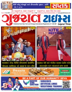 Published from New York and Chicago International Registration # 1 384 667 | SURGERIES | ARTIFICIAL LIMBS | VOCATIONAL TRAINING TAX-EXEMPT 501 C-3 ID#33-0928054 BE A PART OF OUR HUMANITY SEVA BEFORE AFTER A/C Name: Narayan Sewa Sansthan Inc. A/C : 000626069110 | Bank: Bank of America | SCAN QR CODE DONATE www.narayansevausa.org Mr Rashmi Gandhi (President) 626-327-4571 | Mr Mukesh Patel (Treasurer) 917-361-9944 | Mr Bharat Solanki (Secretary) 310-408-4926 એંસી વર્નું ધ્યેયપૂર્ અન સૌજન્શીલ જીવન : લહરી - એસ. કે. દુગ્ગલ વડાપ્રધાન મોદી અન જર્નીના ચાન્લર ફ્રડરિક મર્એ આંતરરાષ્ટ્રી પતં મહોત્વનો પ્રારંભ કરાવ્ય પાનું-9 અંકઃ જાન્યઆરી 23, 2026 (જાન્યઆરી 17 - જાન્યઆરી 23, 2026) િવક્રમ સંવત 2082 No. 39 Vol. XXVII January 23, 2026 (January 17 - January 23, 2026) $1.00 Published by Parikh Worldwide Media, LLC www.gujarattimesusa.com વડાપ્રધાન નરે્દ્ર મોદીએ સોમનાથમાં આયોજિત 'સોમનાથ સ્વાભમાન પર્ 2026'માં ભા લીધો પાનું-22 પાનું-18